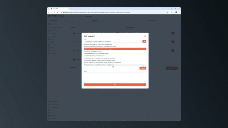 MamaCRM helps you identify strengths, weaknesses, opportunities, and threats, giving you a structured strategic foundation.