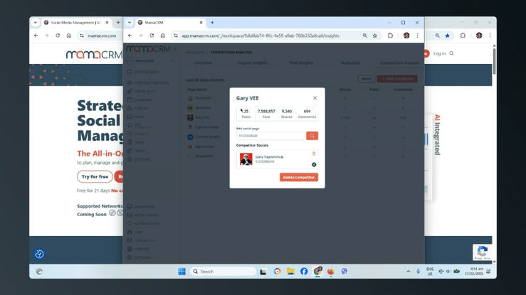 MamaCRM allows you to add unlimited competitors or brands and monitor their followers, engagement, and performance from one single dashboard.