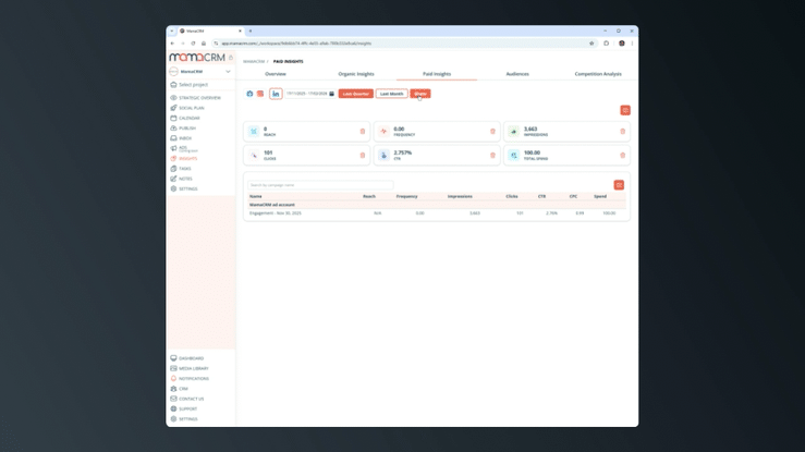 MamaCRM allows you to connect your advertising accounts and generate clean, professional reports in seconds.