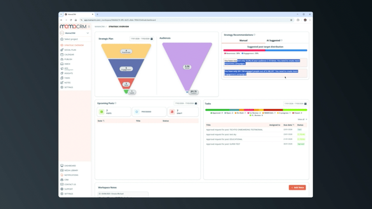 MamaCRM was built to bring strategy back to the center of social media management. Unlike traditional tools, MamaCRM helps marketers, businesses, and agencies plan, document, and improve their marketing strategy, not just publish content.